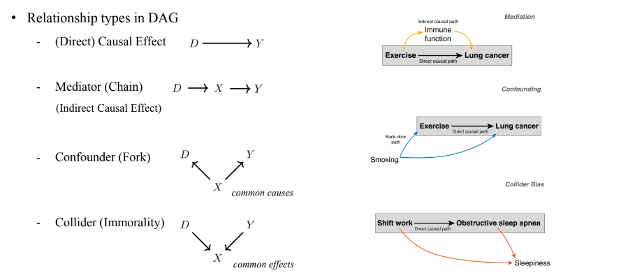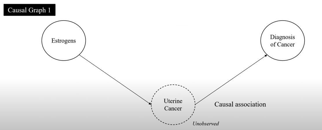 - ex) 호르몬 치료가 자궁암에 영향을 준다는 연구 결과 → 호르몬 치료를 하면 자궁에 출혈이 많이 생겨서 자궁암 검사를 많이 하기 때문! ⇒ 인과그래프를 활용한 통제실험 필요