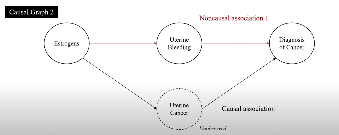 → Noncausal association1: Uterine Bleeding을 통제하면 Mediator로서 noncausal association 차단 가능