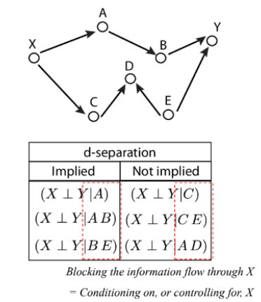- A / AB / BE를 차단하면 X와 Y는 d-separated