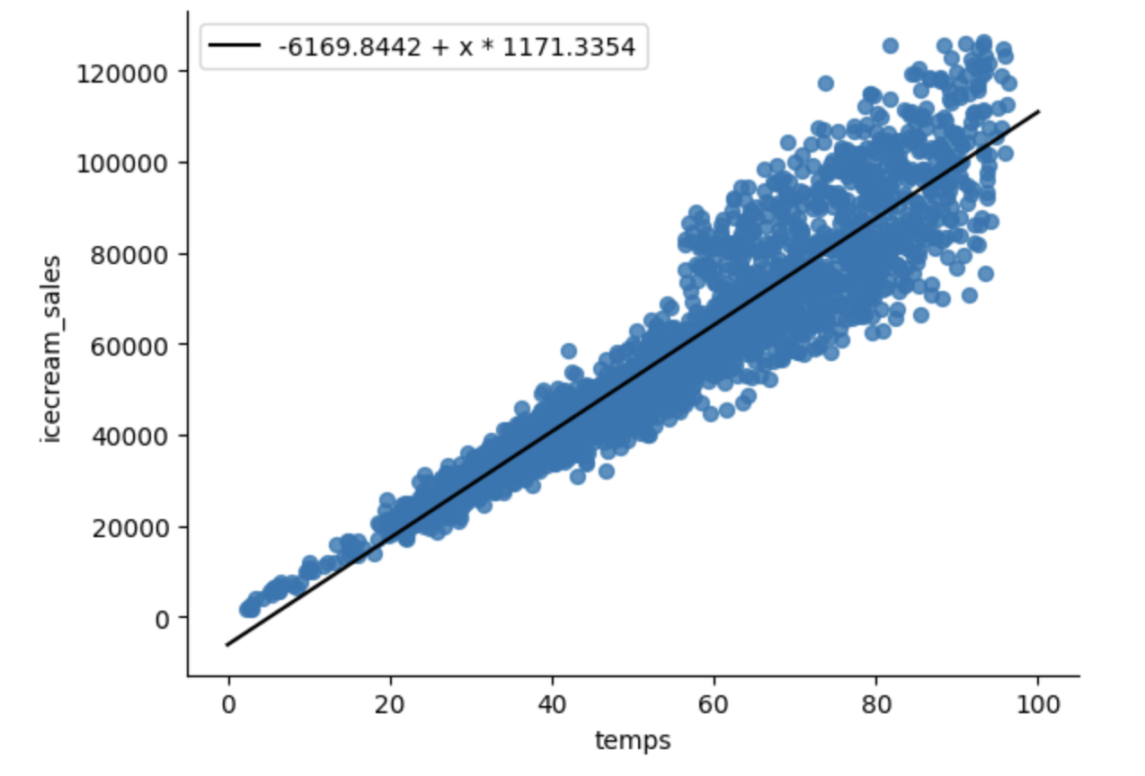 - y축: 동일 temp 내 아이스크림 평균 판매량