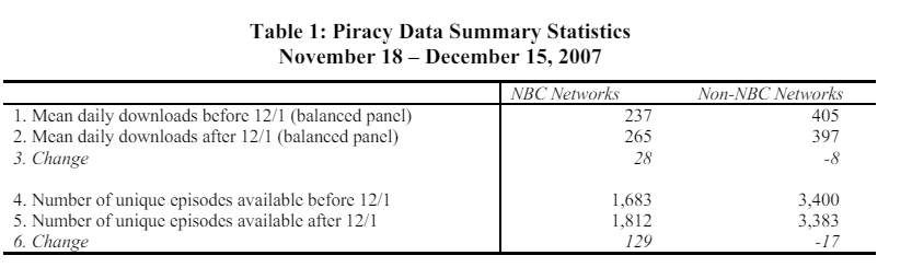 - non-NBC 채널에서는 불법 다운로드 수에 차이가 없었음